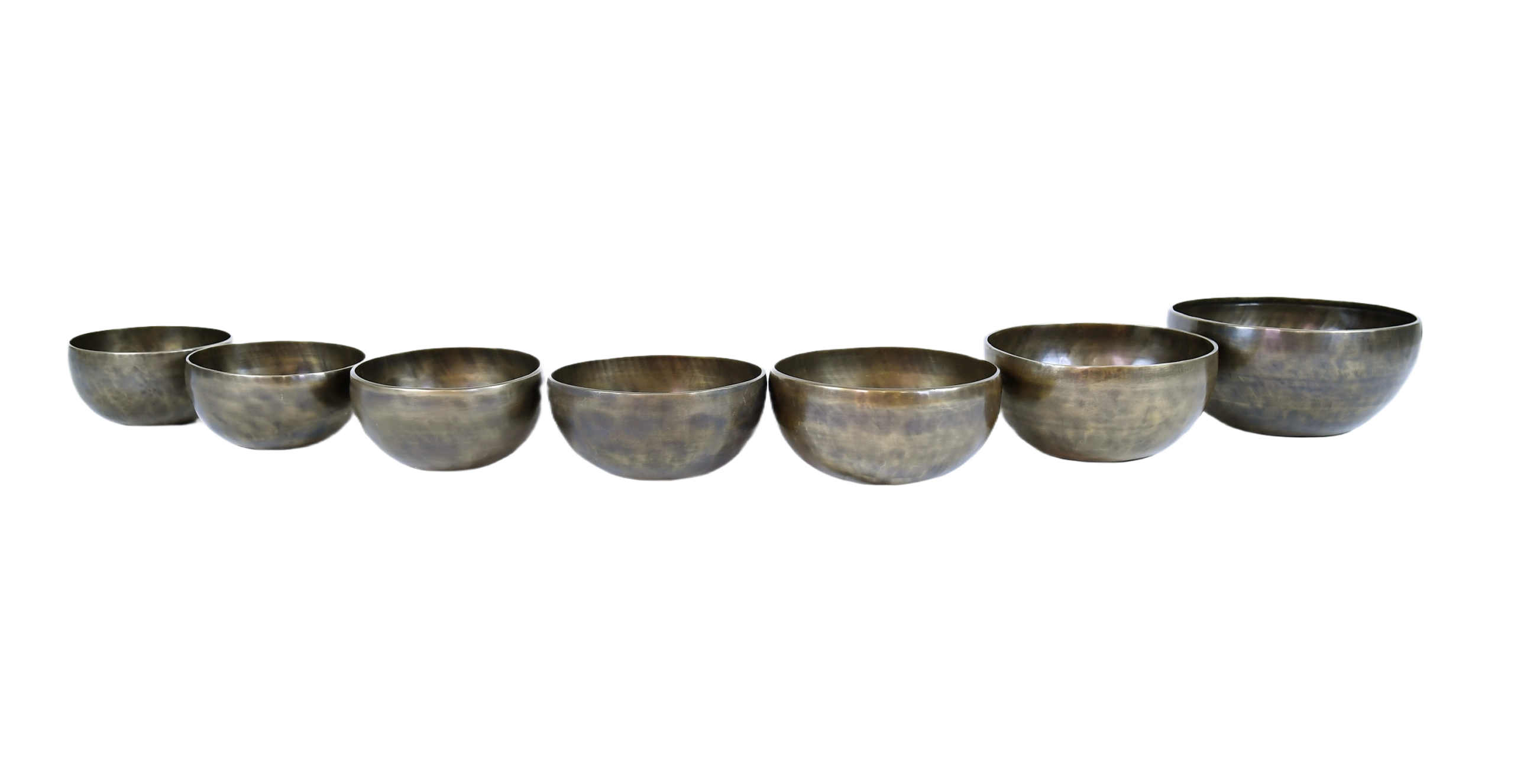 Antique Handmade Full Moon 7 Chakra Singing Bowls Set